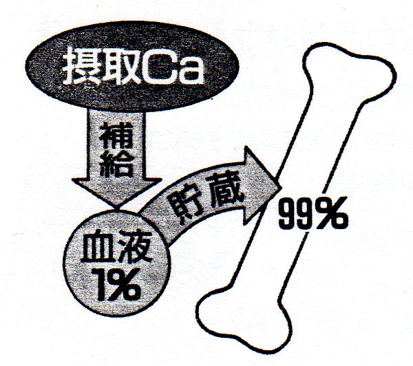 摂取カルシウムの99%は骨や歯に、1%は血液に。