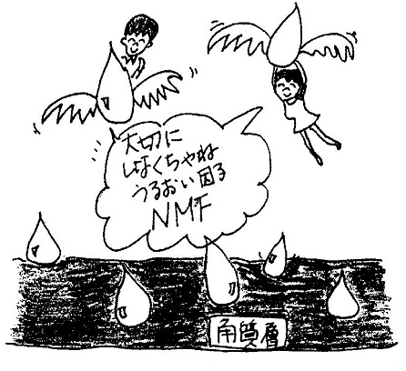 私達のお肌は(角質)に含まれる大切な"うるおい因子"がNMF。洗顔後、お肌がつっぱり、カサついたりするのは、このNMFが減少するからなのです。