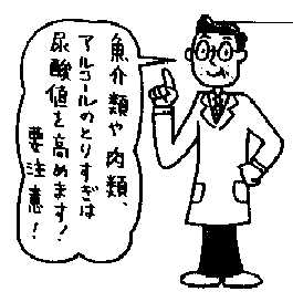 検査の結果心配されること ・値が高い場合・・・・・痛風、白血病、多発性骨髄腫、溶血性貧血、高血圧症、心不全、腎炎、腎結石、妊娠中毒症