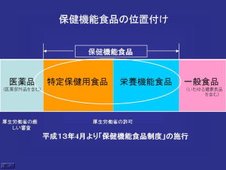 保健機能食品はその中間に位置するもの、もう少し判りやすくいうと、医薬品は厚労省の許可がいる。 こちらに一般食品と健康食品。保健機能食品はたとえば、コレステロールの高いおかたにどうですかとか、血糖値のたかい方どうですかとか。 栄養機能食品は厚生省の許可は必要なく、カルシウムとかビタミンCとか特定の成分が入っていて、特定の用途に使われます。 われわれが通常見ることが多いのは、特定保健食品、トクホといわれています。 ひとが動いているようなマークがついています。 医薬品と健康食品とは違います。 健康食品は効能効果が謳えないこと、あくまで食品の延長です。 しかも健康食品だからといって体によいものばかりとは限りません。 女性がダイエットで健康食品を服用して亡くなった例もあります。 インターネットで販売されている健康食品のなかには、本来入っていてはいけない成分が入っていたりすることもあります。抗精神薬が入てたり、食欲中枢を抑えたりする成分が入たりします。本来健康食品に入っていてはいけないものです。 健康食品は体によいからと、むやみやたらに何でも買うのではなく、よ く相談してからお買いになって下さい。 買って頂きたいとは思います。 あくまで食品の延長です。 症状を相談しながら必要かどうかを判断してお買いになってください。 医薬品は、キチンとした効能効果で、使い方をあやまると副作用がでてきます。 最後、は駆け足で説明しましたが、健康食品のこと、介護用品のこと、医療用品のこと、健康管理のこと、などぜひお近くの薬局でご相談をなさってください。 話が長くなりました。 健康食品と医薬品のことについて十分説明申し上げたかったのですが、時間がありませんでした。 今日のお話はここで終わりにします。 お話が盛り沢山で、判りやすかったかどうか。 ご清聴ありがとうございました。 |