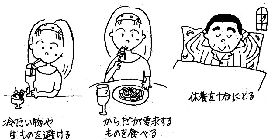 夏場、普段から体質的に水分代謝の悪い方は、冷たいもの(ビールやジュースなど)を取り過ぎて腹をこわし、食べ物が消化不良となって下痢などを引き起こします。こうした場合は、下痢や腹下しの原因となっている水分代謝を円滑にしていく必要があります。