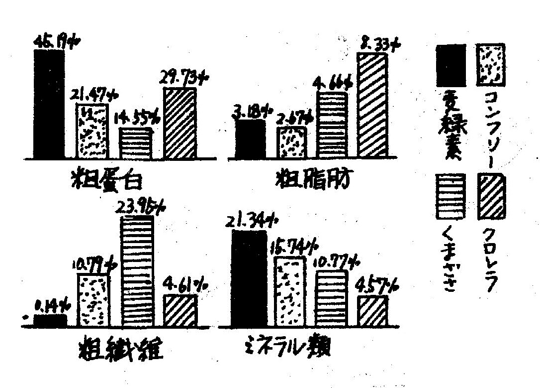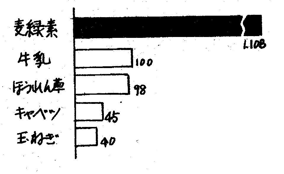 麦緑素と各種青汁粉末の成分比較(100g中の含有量)