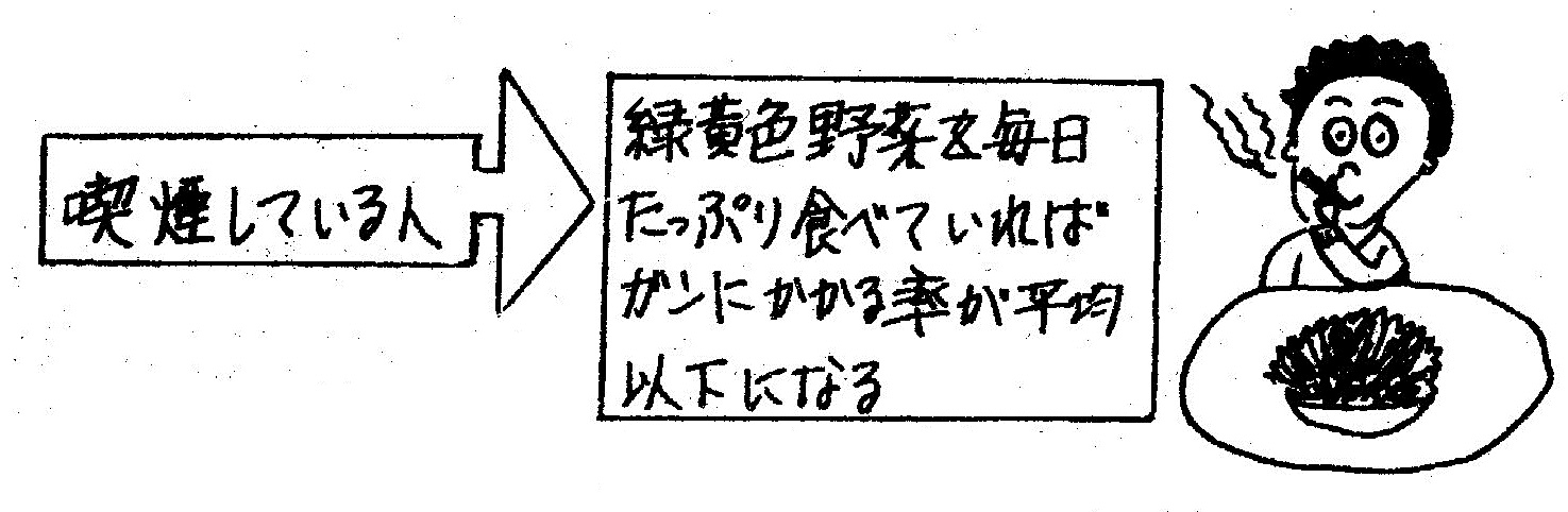 緑黄色野菜を殆ど食べない人は、よく食べる人よりもガンになる危険率が疫学的にみて約2倍も高くなります。