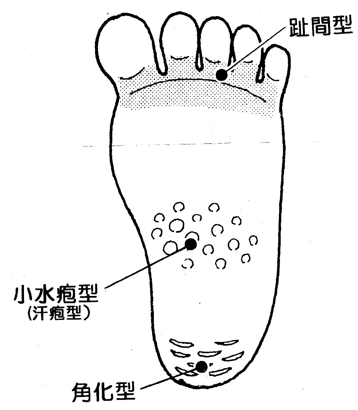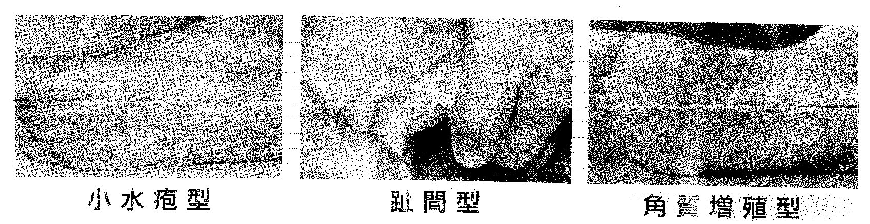 趾間型 足の指の間が白くふやけ、皮がむける。 |