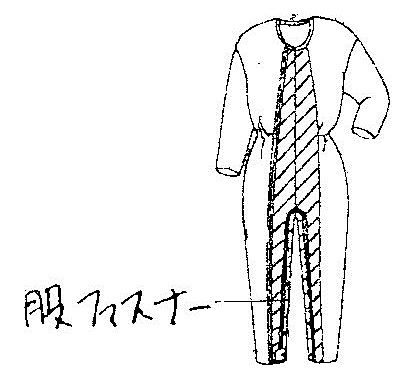 つなぎ型で背中と股下はファスナーで開閉。着せ替えが楽です。ファスナーの金具は肌に当たらない様になっています。