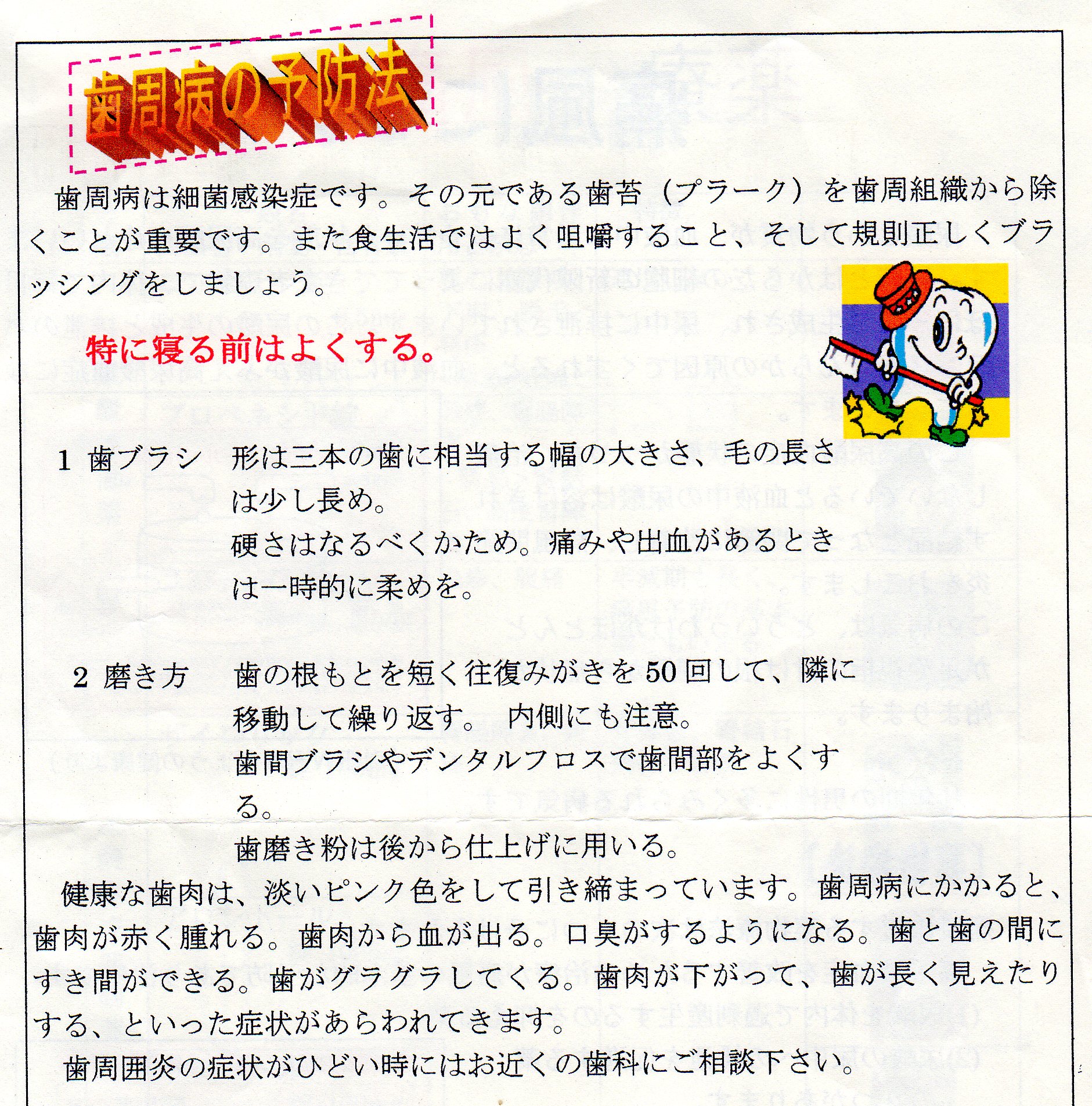 日頃から歯肉炎や歯槽膿漏の予防に心がけましょう。